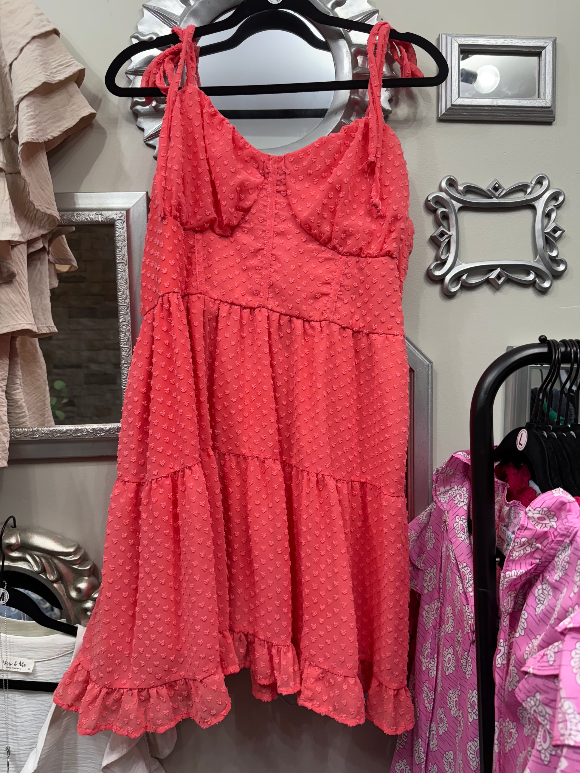 Slip into effortless style with this coral pink dress. Perfect for casual outings or weekend adventures, it's a versatile piece that pairs beautifully with sneakers or sandals. The flattering cut and vibrant hue make it an instant wardrobe favorite that works from day to night.